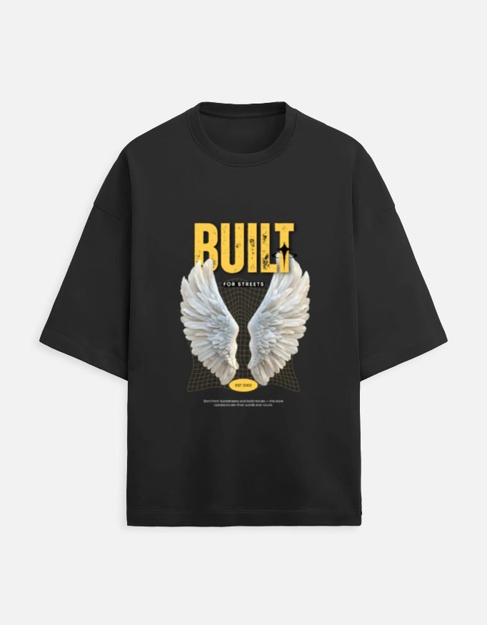 Featuring a bold “Built” typography with powerful wing graphics, this t-shirt reflects a strong and fearless streetwear attitude.